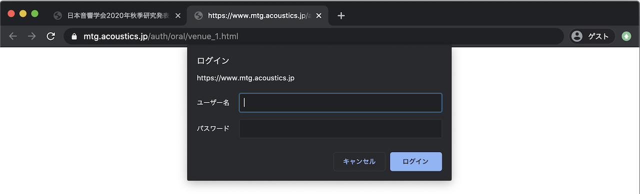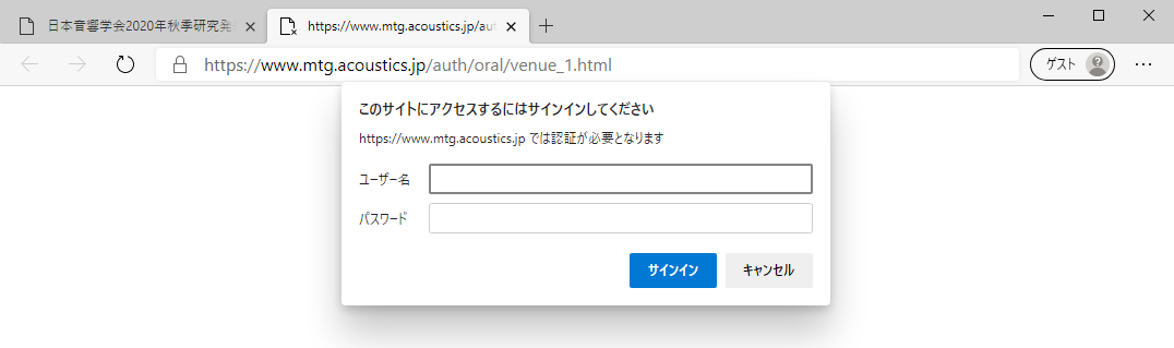 - 本サイトでは、発表会場のアドレス情報へのアクセスにユーザ認証が必要です。